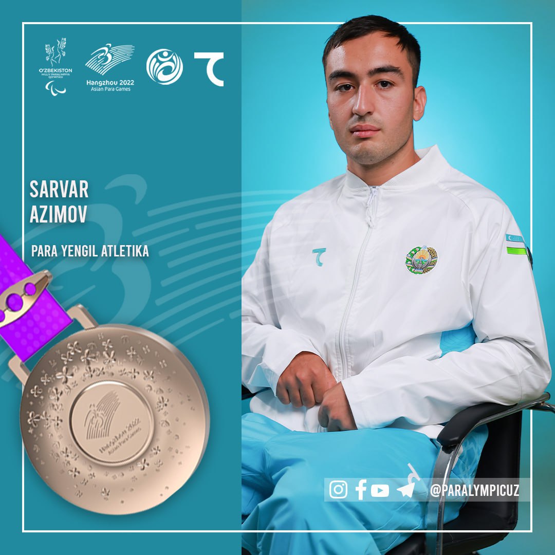 Xitoyning Xanchjou shahrida IV Paraosiyo oʻyinlari boshlandi. Oʻzbekiston delegatsiyasi musobaqaning birinchi kunini muvaffaqiyatli boshladi. Para-kanoe bahslarida hamyurtlarimiz Shahzoda Mamadaliyeva (VL3), Irodaxon Rustamova (VL2) hamda Azizbek Abdulhabibov (KL2) oʻz dasturlarida oltin medallarni qoʻlga kiritishdi. Shuningdek, para-yengil atletika bahslarida Sarvar Azimov F32 klassida kechgan klab uloqtirish bahsida 39.13 metr bilan bronza medaliga ega chiqdi.